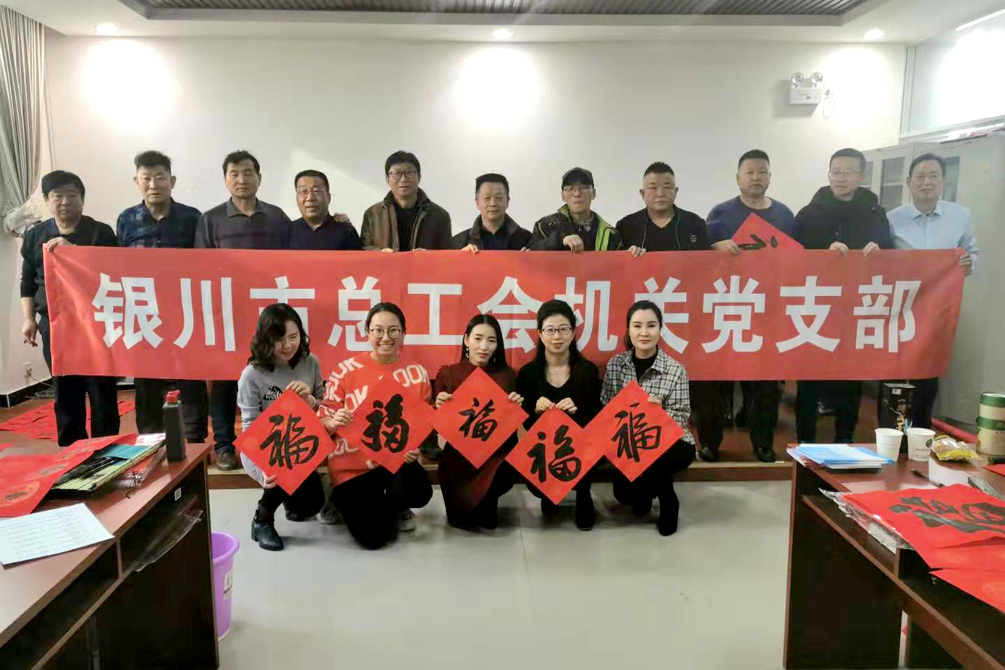 近日,机关支部和活动中心支部的党员组成5个工作组,对7家困难企业、2家重点行业和7家市属医疗保障急救单位进行慰问,对困难职工、劳动模范进行入户慰问,向他们送去了党和政府的关怀。1月16日,银川职工书画院党员组织10多名书法家,深入银川火车站、经济开发区、民生银行等地,为基层免费书写春联500多幅,向一线职工送去市委、市政府和工会组织的新春祝福。机关支部党员深入企业,向即将返乡的农民工进行维权宣传,并送去政策法规等资料。去年11月中旬以来,机关支部和活动中心支部党员丰富基层职工文化生活,组织展示100多个职工文艺节目。1月17日,在银川剧院举办春节联欢晚会,组织200余名职工演出13个节目,为全市广大职工和居民献上了春节文化大餐。