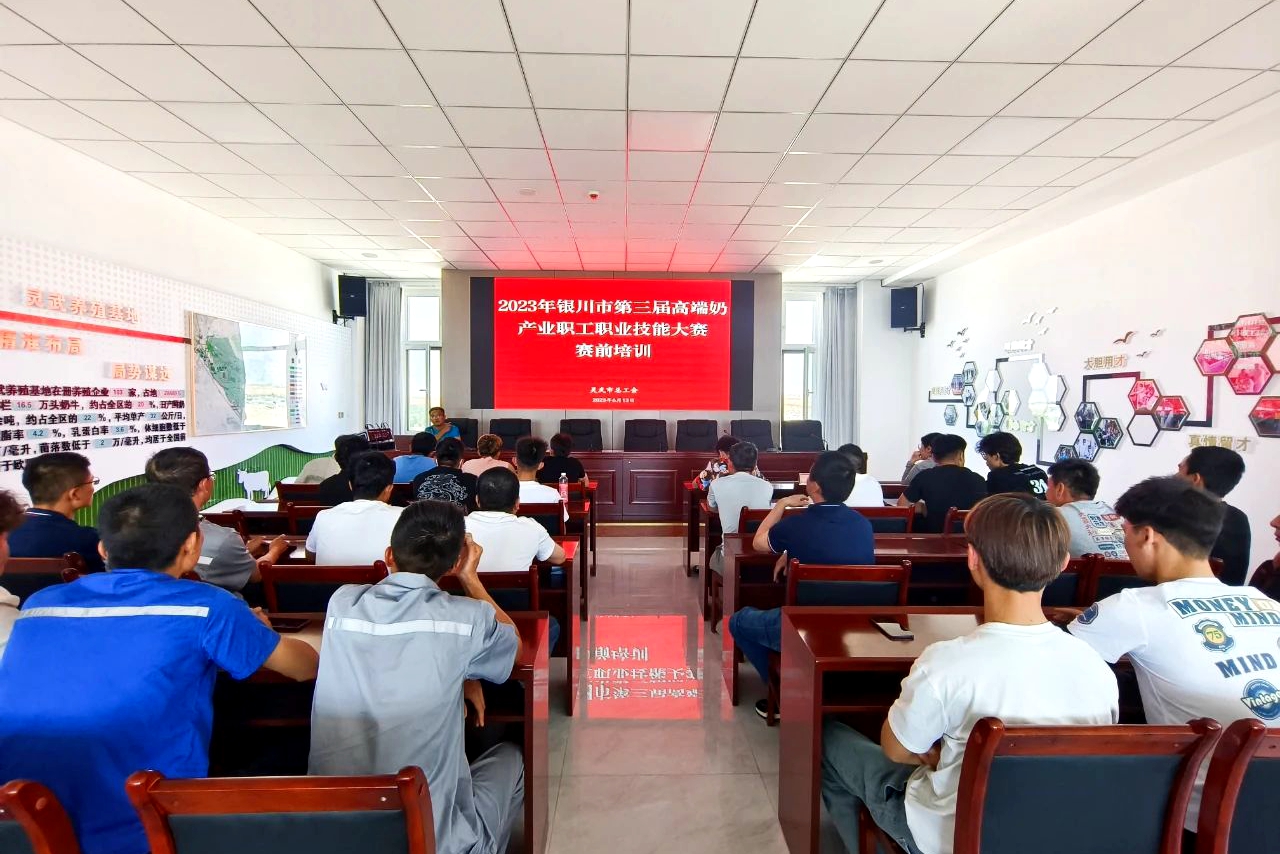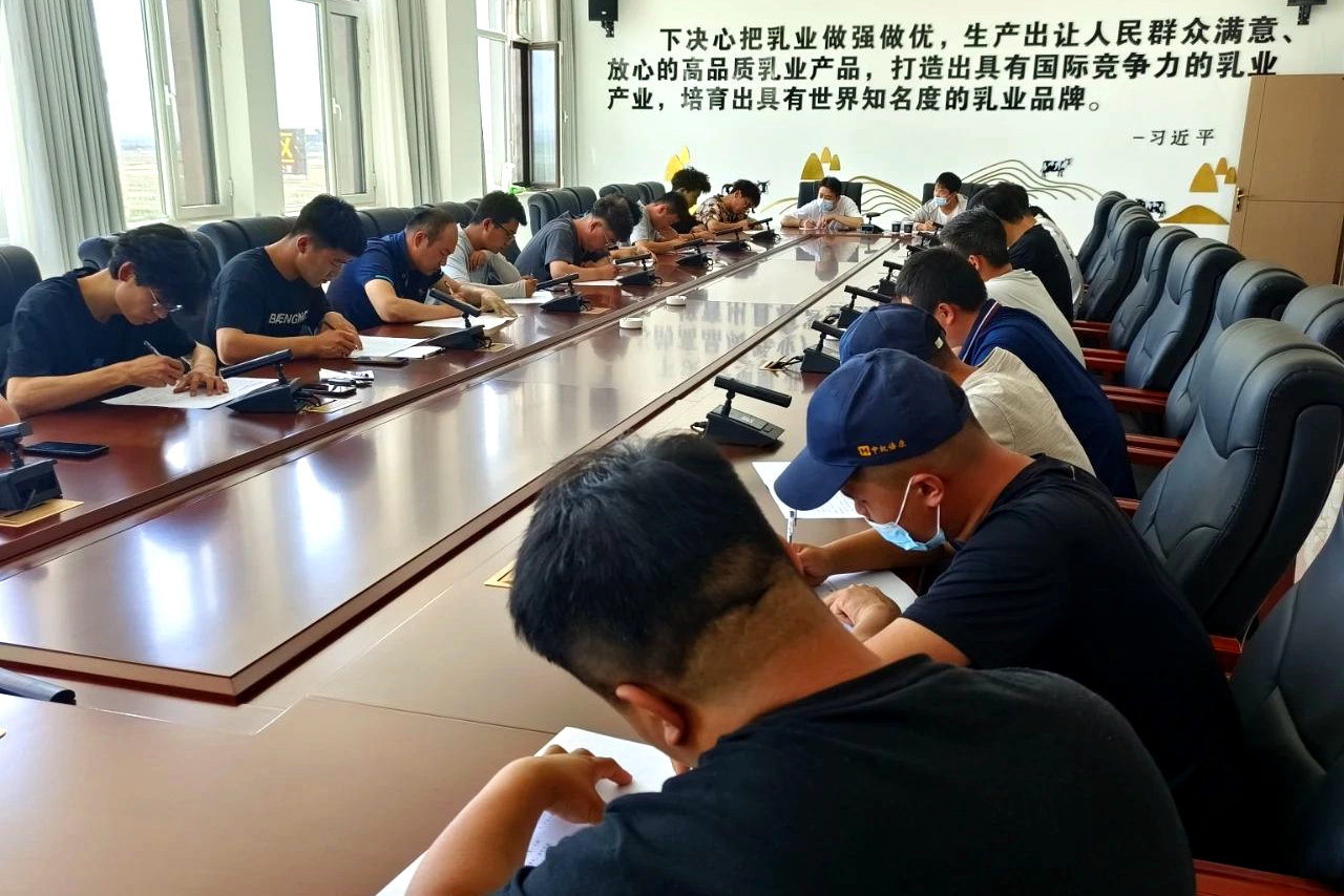 为全面提升高端奶产业工人技能水平,建立高素质、高技能产业工人队伍,推进产业工人队伍建设改革走深走实,夯实133劳动竞赛品牌基础,6月13日,银川市第三届高端奶产业职工职业技能竞赛赛前培训和基础理论考试在灵武市养殖基地指挥部顺利进行。