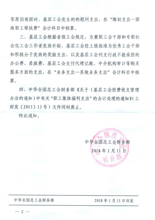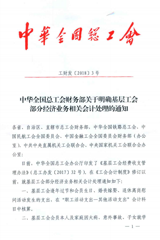 中华全国总工会财务部关于明确基层工会部门经济业务相关会计处理的通知