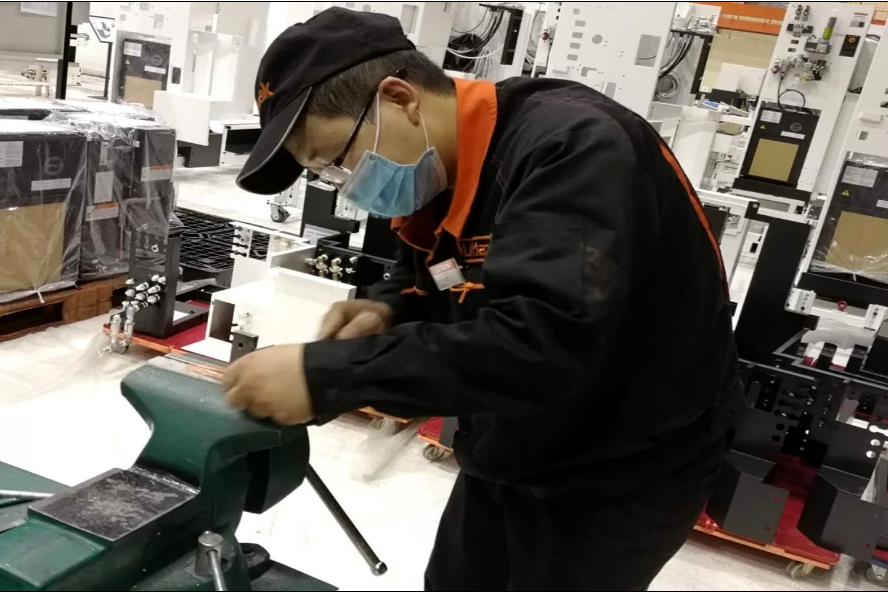 穿梭在各台机器设备之间,陈宁看完这台,接着又跑到另一台设备面前,调整精度、测量数据,他不停巡视,哪台设备出现问题,他就马上进行调整。“陈师傅总是爱往车间里钻,忙碌地周旋于各台设备之间,每一台机器设备上都有他忙碌的身影。”徒弟周子明说,工作中的师傅非常认真,而且对新员工也很有耐心,通过组织现场培训,积极为大家讲解示范高度尺的测量、内径千分尺、油标卡尺等常用量具的使用方法。同时,他还非常勤恳,面对现场安装过程中出现的各种问题,他总是进行分类总结归纳,将零散的经验一一整理好,并发放给我们这些徒弟,进一步提高我们的工作效率。